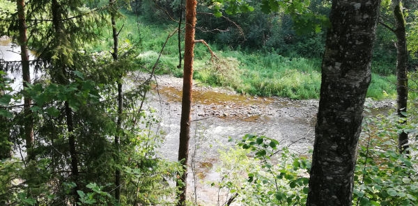 Kamēr spriežam par dažādām sociālajām lietām, esam šķērsojušas Lielo Juglu. Lai gan lielajā sausumā upe izskatās sekla un izžuvusi, Inga skaidro, ka arī tagad, vasarā, vairāki upes posmi esot piemēroti laivošanai, savukārt pavasarī Lielā Jugla esot ļoti iecienīta laivošanas vieta.