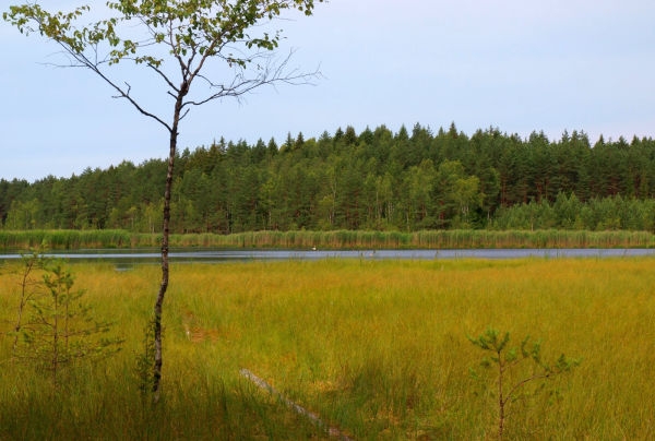 Bet tikmēr, kā vēsta takas sākumā novietotais informācijas stends, ir iespēja purvu ap ezeru izstaigāt ar īpašajām purva kurpēm. Tā kā līdzīgā atrakcijā divreiz esmu piedalījusies Igaunijā, zinu, ka tas tiešām ir aizraujoši – pie kājām tiek piestiprināts kas līdzīgs sniega kurpēm, un – aiziet! Protams, akačos kāpt nevajag, un, ja purvs ir mitrs, vēlams apaut gumijas zābakus.