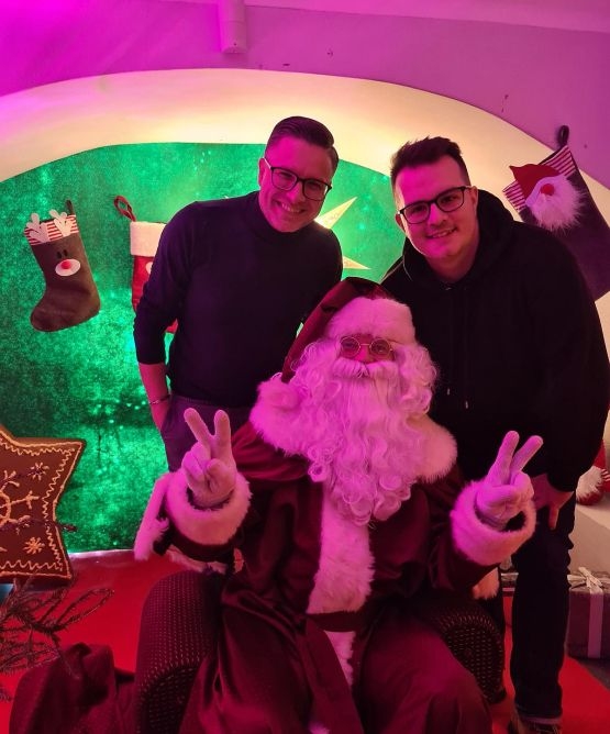 Andris Ērglis kopā ar Mārtiņu Kanteru un Ziemassvētku vecīti pērn ikgadējā tūrē “Sirds ir balss” Alūksnē.